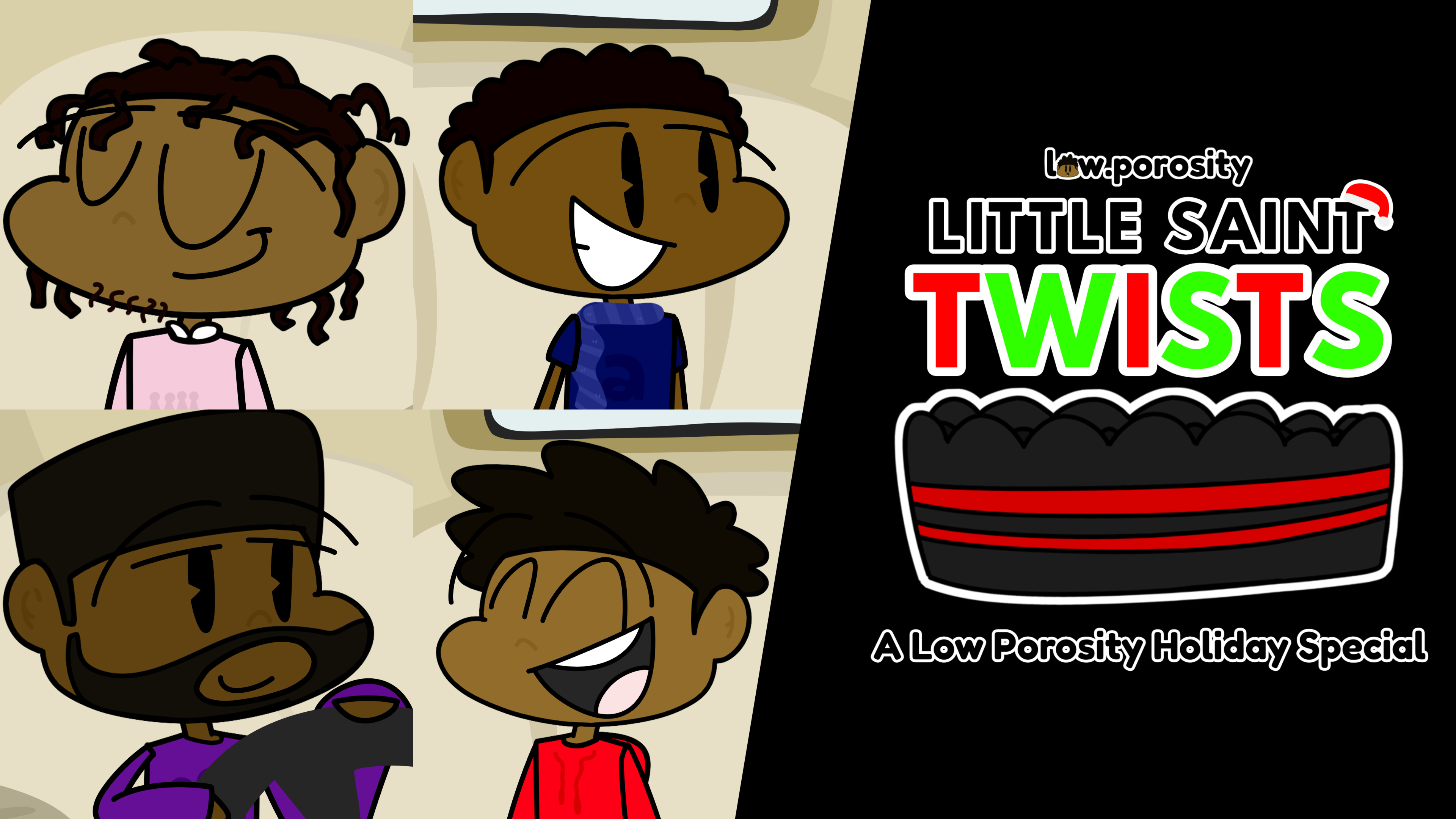 Join the Low Porosity gang in their very first, full-length, fully-colored special, "LITTLE SAINT TWISTS"!